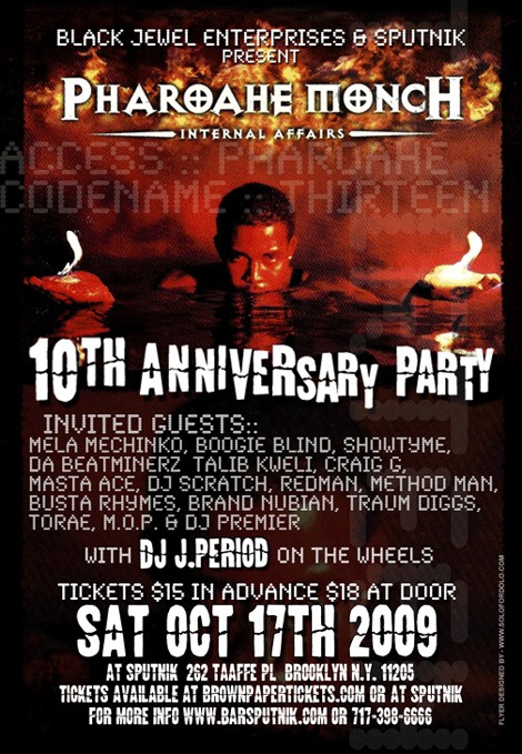 Funny how time flies. This Saturday, Pharoahe’s celebrating the 10 year release of his debut, Internal Affairs. If you’re in Medina this weekend, Simon says get the fuck up and show ya support.