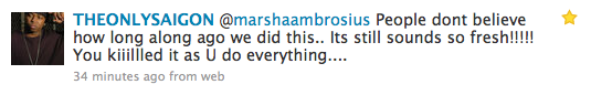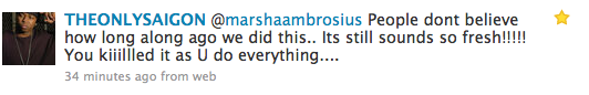 New Music: Saigon x Marsha Ambrosius “It’s Alright” Posted By: B.Dot October 28, 2009 @ 8:20 PM EDT News Share?? Tweet?? Comments2 - Tags: Rate This: 5 Submit No Ratings