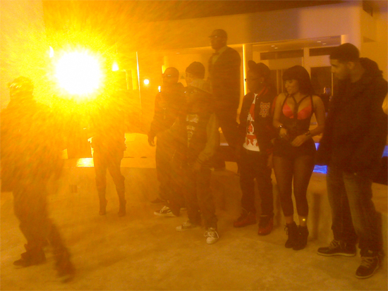 Here are more photographs from the set of Young Money’s “Bed Rock.” Yep, they’re a modern stone age family. More after the cut.