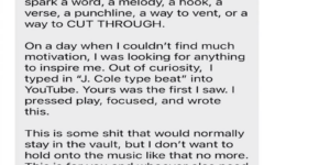 I AM A HUGEEEEE J. COLE FAN…I must say he’s falling off my radar a record pace. The last three song I heard from him were “Industry Nice” but otherwise lack luster. I feel nothing when I hear some of this stuff. He’s gotta hit us with something hard soon. Damn.